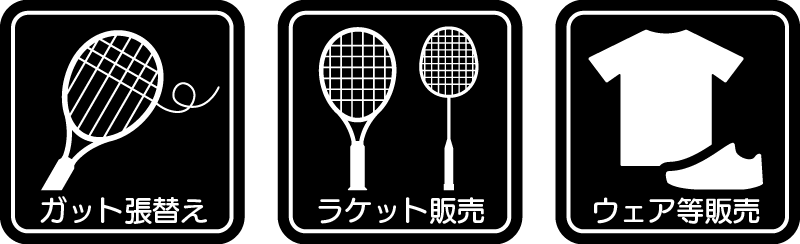 ガット張りだけではなく、ラケット・ウェア・シューズ等も取り揃えております!